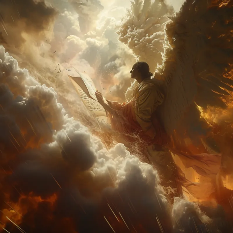 1ثم رأيت ملاكا آخر قويا نازلا من السماء متسربلا بسحابة وعلى راسه قوس قزح ووجهه كالشمس ورجلاه كعمودي نار