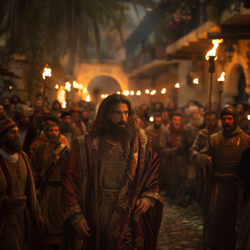 Jesus is betrayed by Judas, arrested, and brought to trial.
