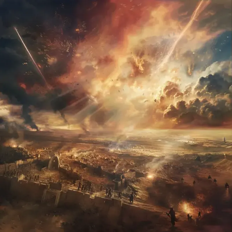 22וְנִשְׁפַּטְתִּי אִתֹּו בְּדֶבֶר וּבְדָם וְגֶשֶׁם שֹׁוטֵף וְאַבְנֵי אֶלְגָּבִישׁ אֵשׁ וְגָפְרִית אַמְטִיר עָלָיו וְעַל־אֲגַפָּיו וְעַל־עַמִּים רַבִּים אֲשֶׁר אִתֹּו׃