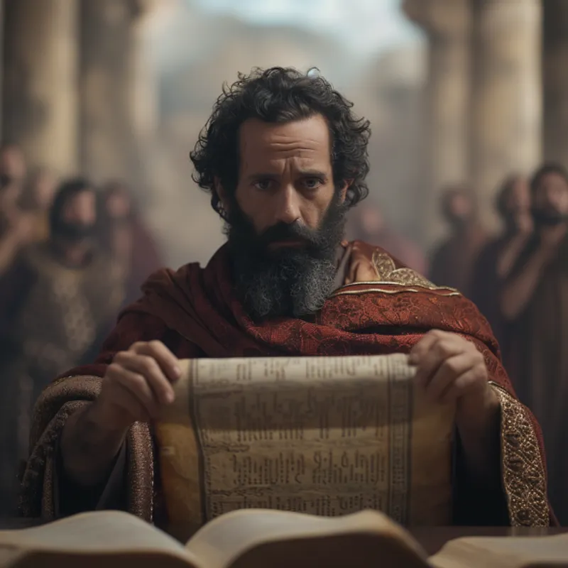 2และข้าพเจ้าได้เห็นทูตสวรรค์ที่มีฤทธิ์องค์หนึ่ง ประกาศด้วยเสียงอันดังว่า "ใครเป็นผู้ที่สมควรจะแกะตราและคลี่หนังสือม้วนนั้นออก"