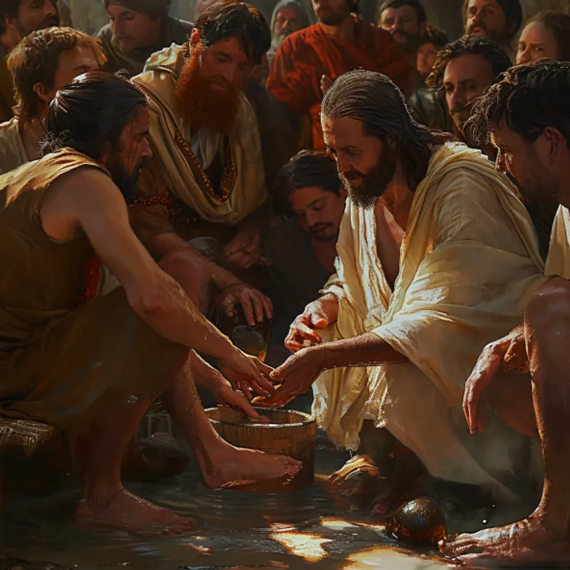 Chương 13 của Gioan: Chúa Giê-su rửa chân cho môn đồ và dạy về lãnh đạo phục vụ và tình yêu.